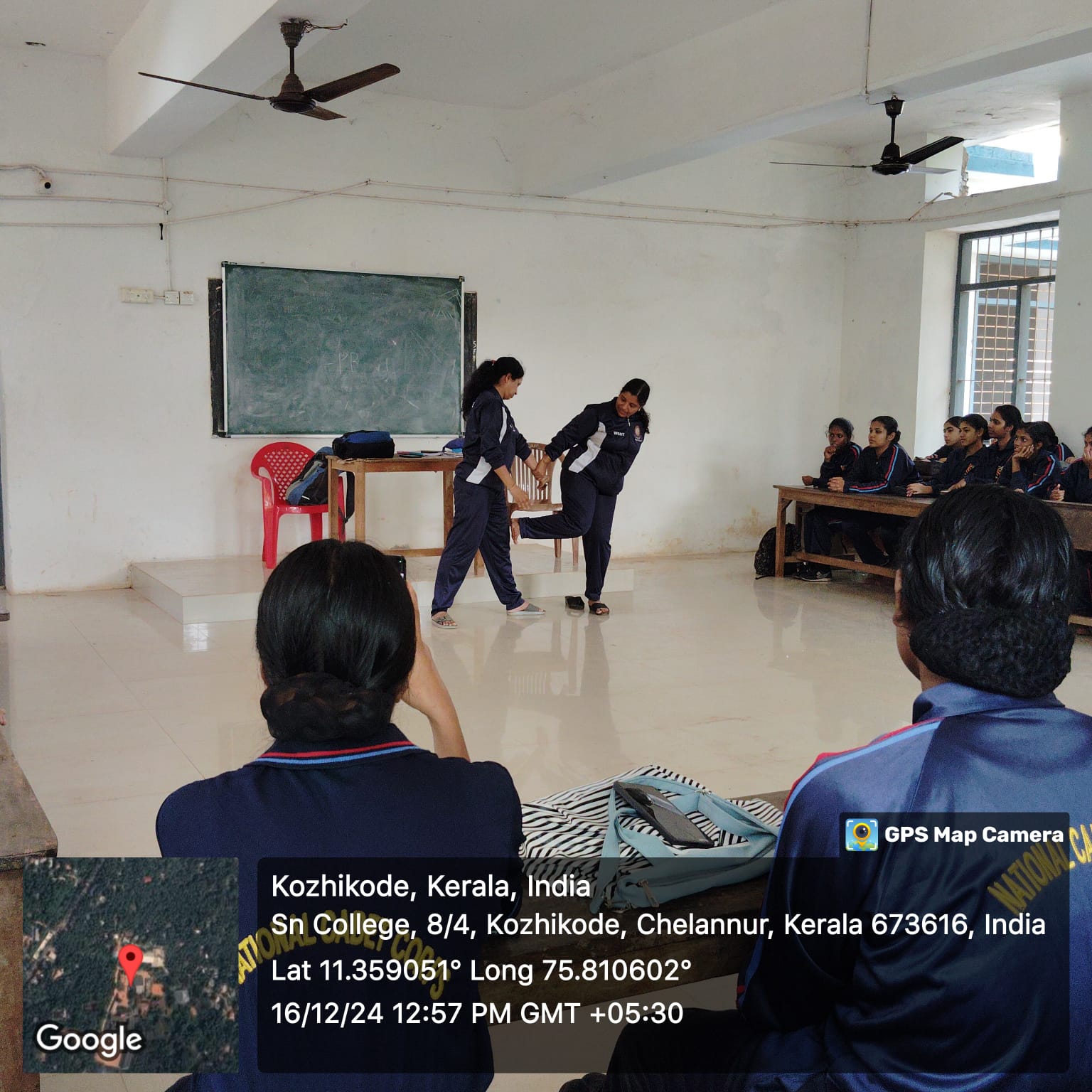On 16th and 17th December ARMY WING NCC SNGC organised Self Defence class in SREE NARAYANA GURU COLLEGE conducted by Kozhikode Rural Self Defence Team lead by JEEJA KG (Senior Civil Police Officer) and SHEEJA VV (Assistant Sub Inspector).