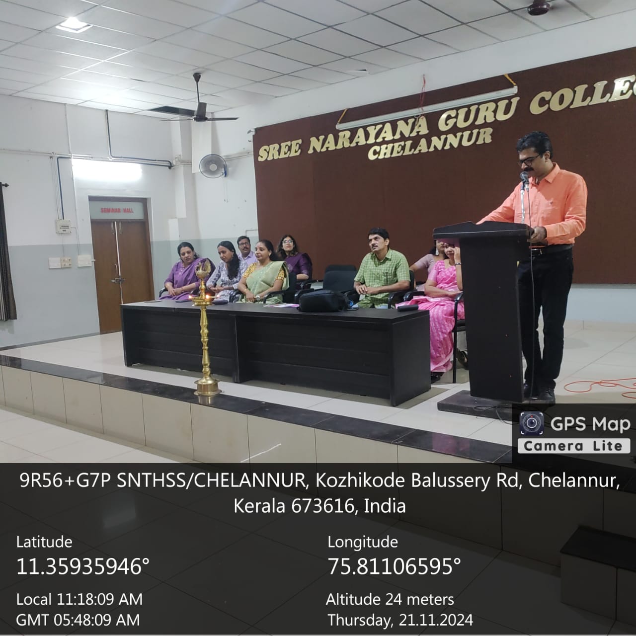Department of Commerce & Management Studies,University of Calicut, was the resource person of the workshop. Dr. Jeothilakshmi SK (Assistant professor, Commerce & Secretary PTA) welcomed the gathering. The program was inaugurated by Prof. (Dr) Kumar SP, Principal, Sree Narayana Guru College Chelannur. Smt. Aswani BG, College librarian delivered the presidential address and felicitations were proposed by Dr. Athma Jayaprakash (IQAC Coordinator) Smt. Neethu P (HOD, Physics) Smt. Vandana Viswanath (HOD, English). Sri Maneesh MKC, Library Assistant, delivered vote of thanks.