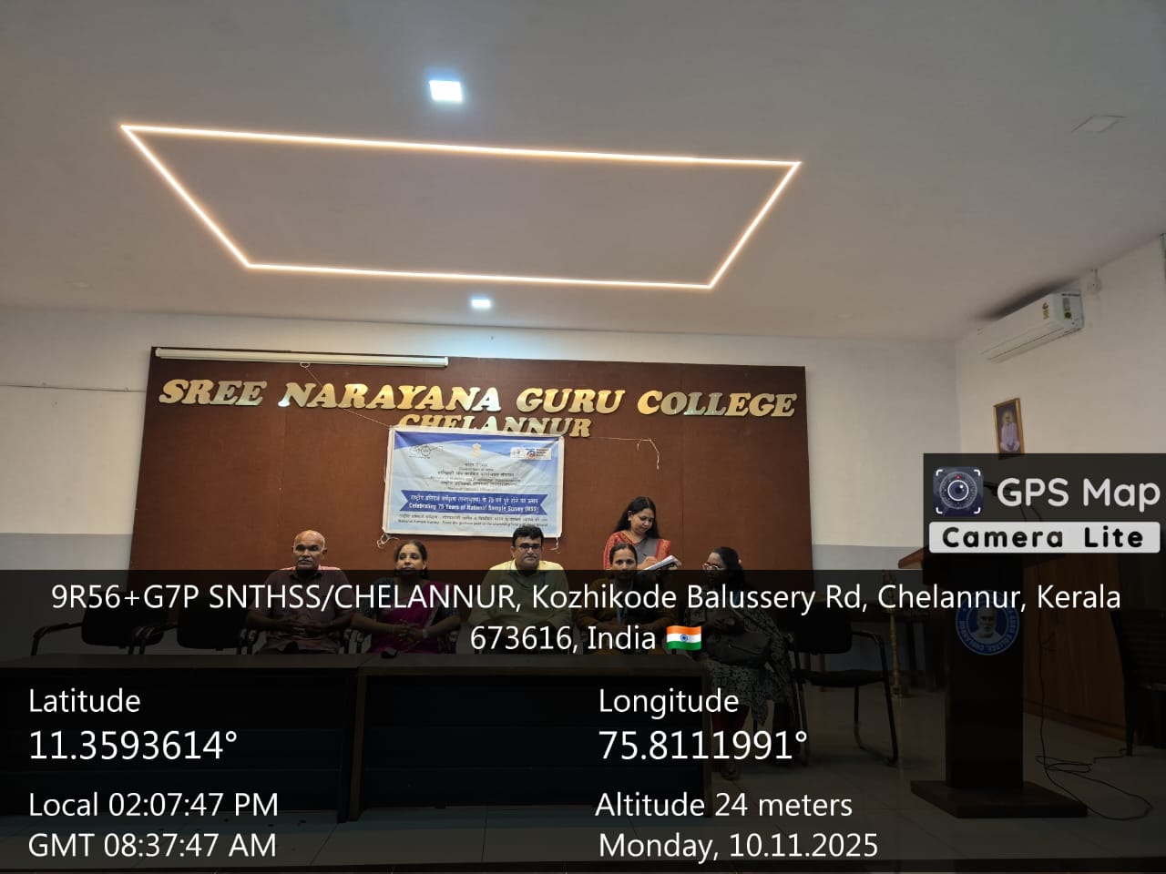 A special session was dedicated to presenting and discussing selected works of Sree Narayana Guru, the revered social reformer, philosopher, and poet. Faculty members and selected students presented insights into Guru’s literary and philosophical contributions, highlighting their relevance in today’s society. The presentation aimed to create awareness about the values of equality, education, and spiritual growth that Guru advocated.