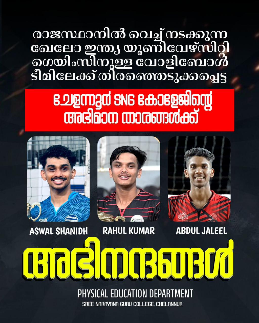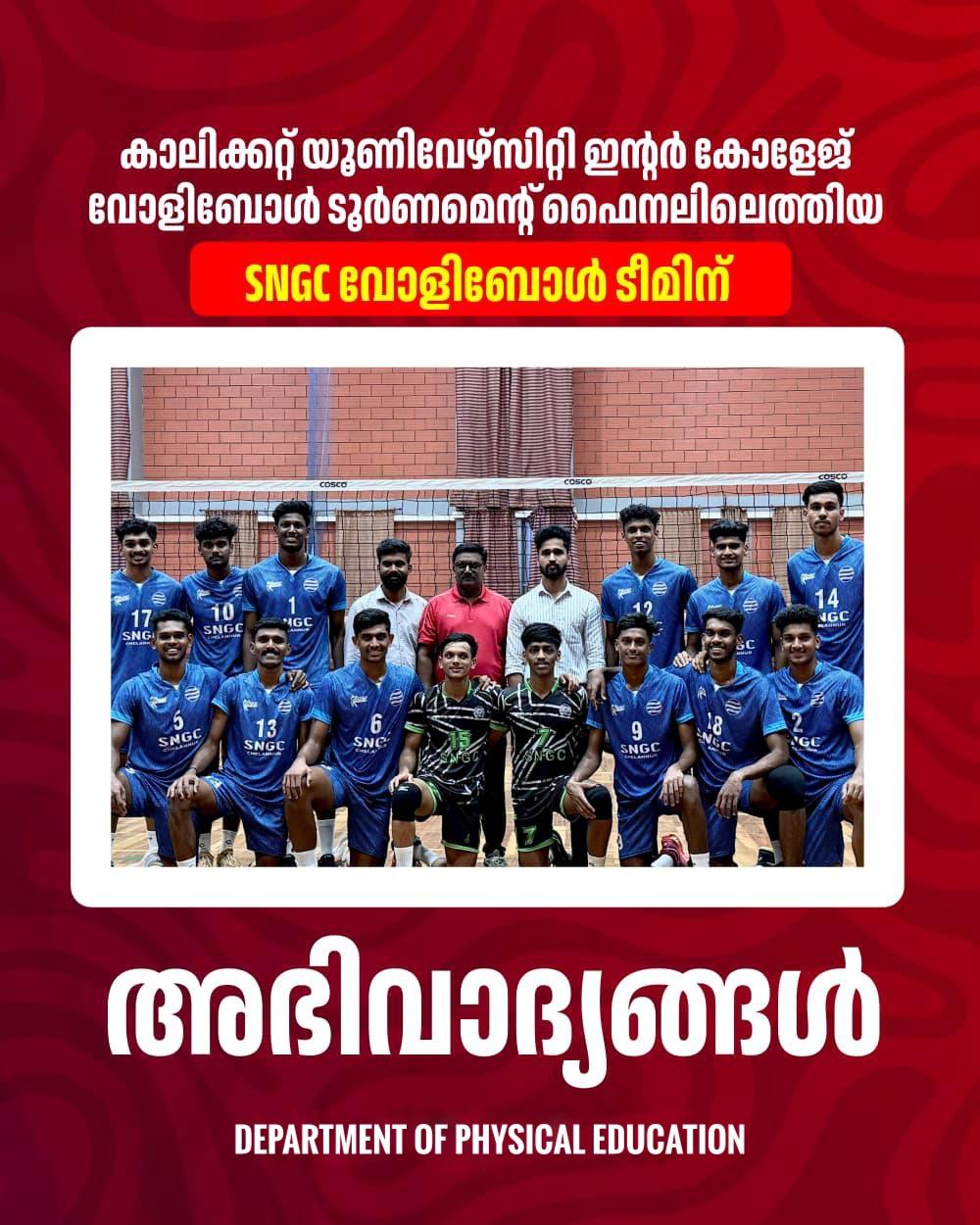 A huge shoutout and congratulations to our incredible Sree Narayana Guru College, Chelannur volleyball team!