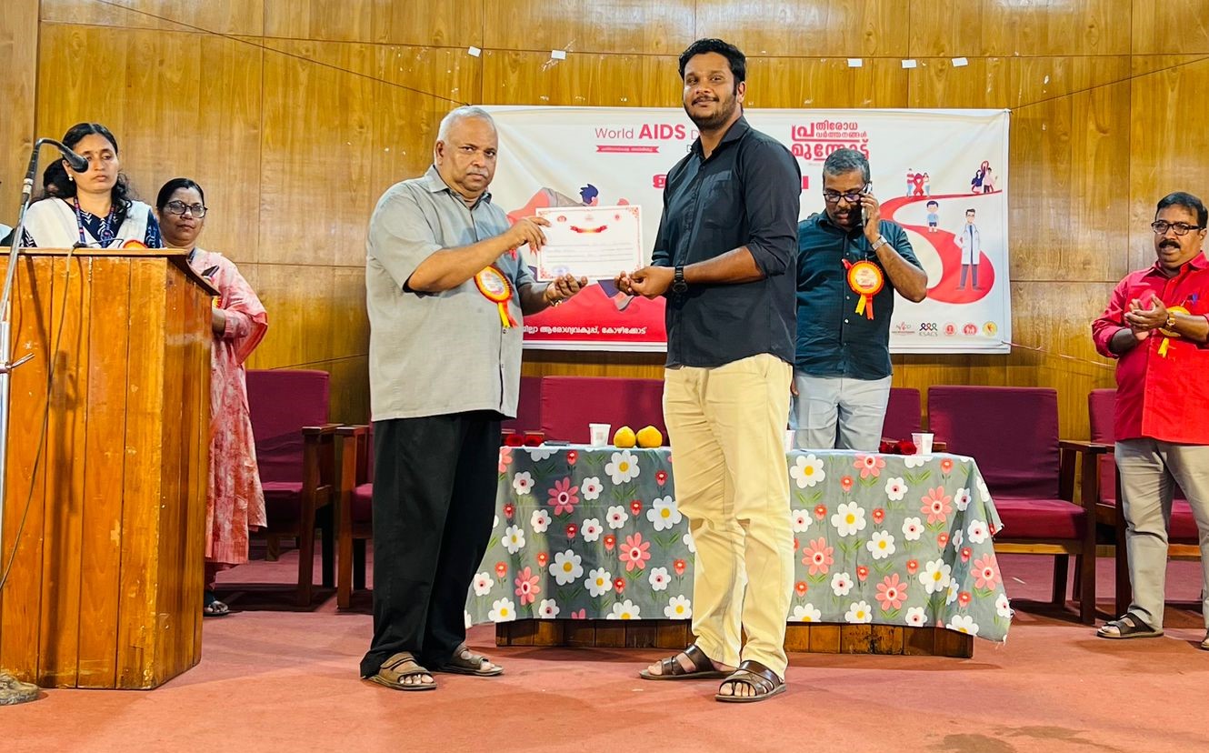 ആഗോള കൈകഴുകൽ ദിനാചാരണത്തിന്റെ ഭാഗമായി കോളേജ് വിദ്യാർഥികൾക്കായി നടത്തിയ ജില്ലാതല റീൽസ് മത്സരത്തിൽ ഒന്നാം സ്ഥാനം നേടിയ വീഡിയോയ്ക്കുള്ള സർട്ടിഫിക്കറ്റ് ഏറ്റുവാങ്ങുന്ന NSS Secretary Vignesh N